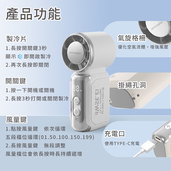 【WONDER】超輕量製冷手持高速扇 WH-FU37