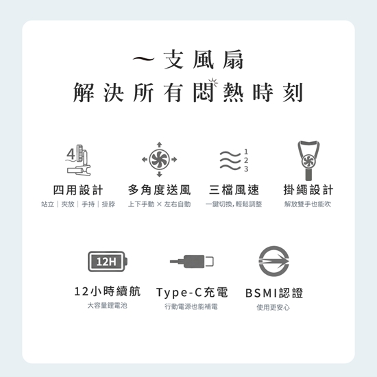 【WONDER】夾式掛脖手持桌立多功風扇 WH-FU36