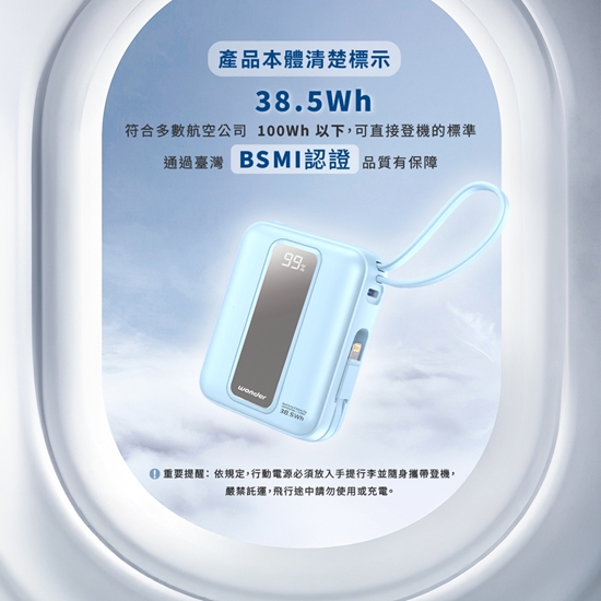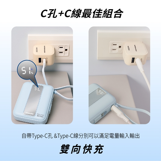 【WONDER】22.5W自帶雙線數顯行動電源10000mAh