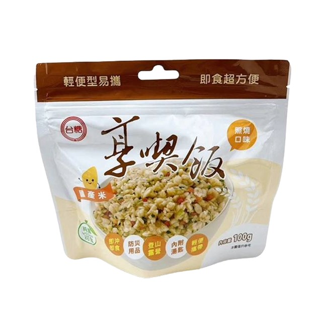 即沖即食(冷、熱水皆可)輕便好攜帶使用國產米適合登山、露營、防災以國產米為基底,搭配特調照燒醬汁,鹹甜適中,無需烹煮,加熱水3-5分鐘即可享用(冷開水約30分鐘),適合當點心及正餐、登山、露營、旅遊及避難時使用